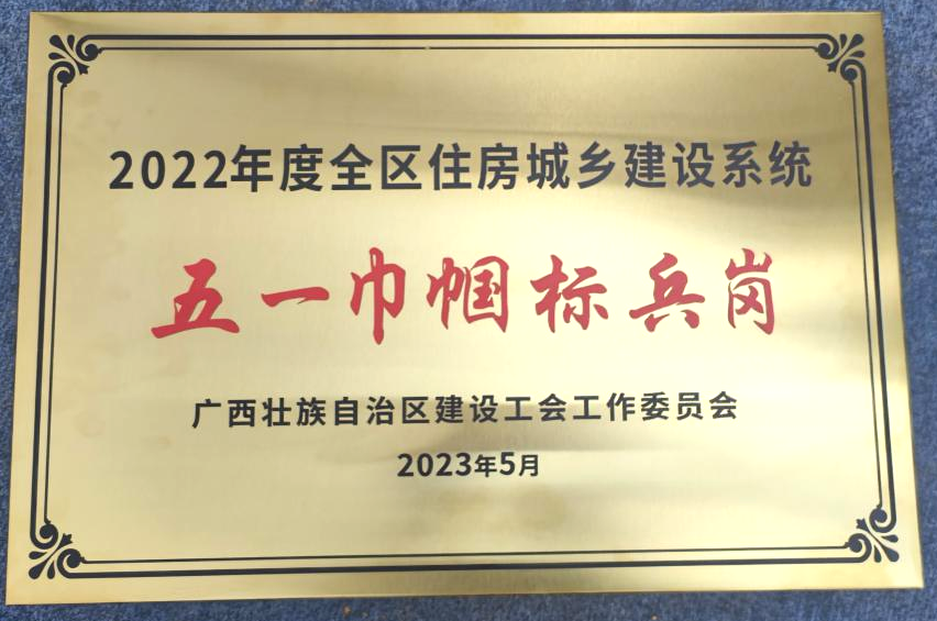 2022年度全区住房城乡建设系统“五一巾帼标兵岗”奖牌