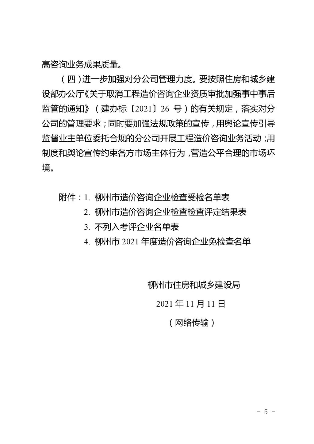 关于开展柳州市2021年度工程造价咨询企业及注册造价工程师专项检查的通知