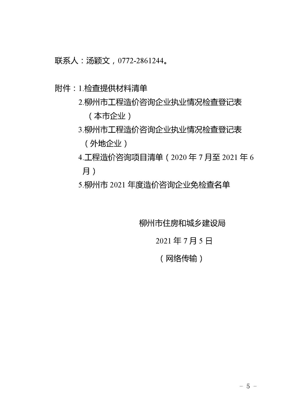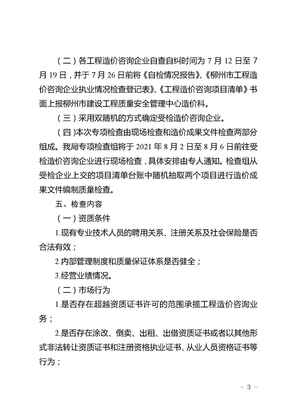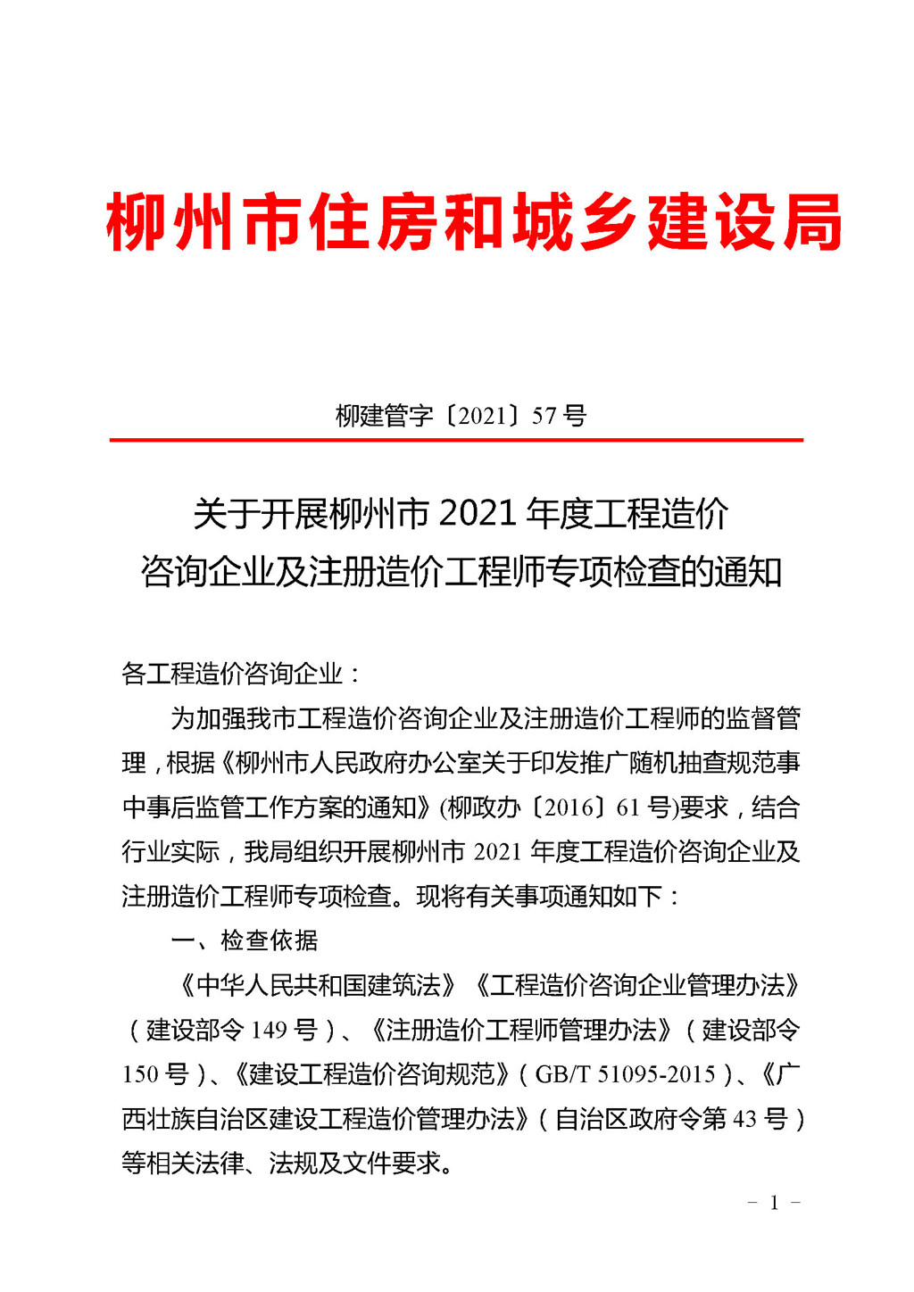 关于开展柳州市2021年度工程造价咨询企业及注册造价工程师专项检查的通知